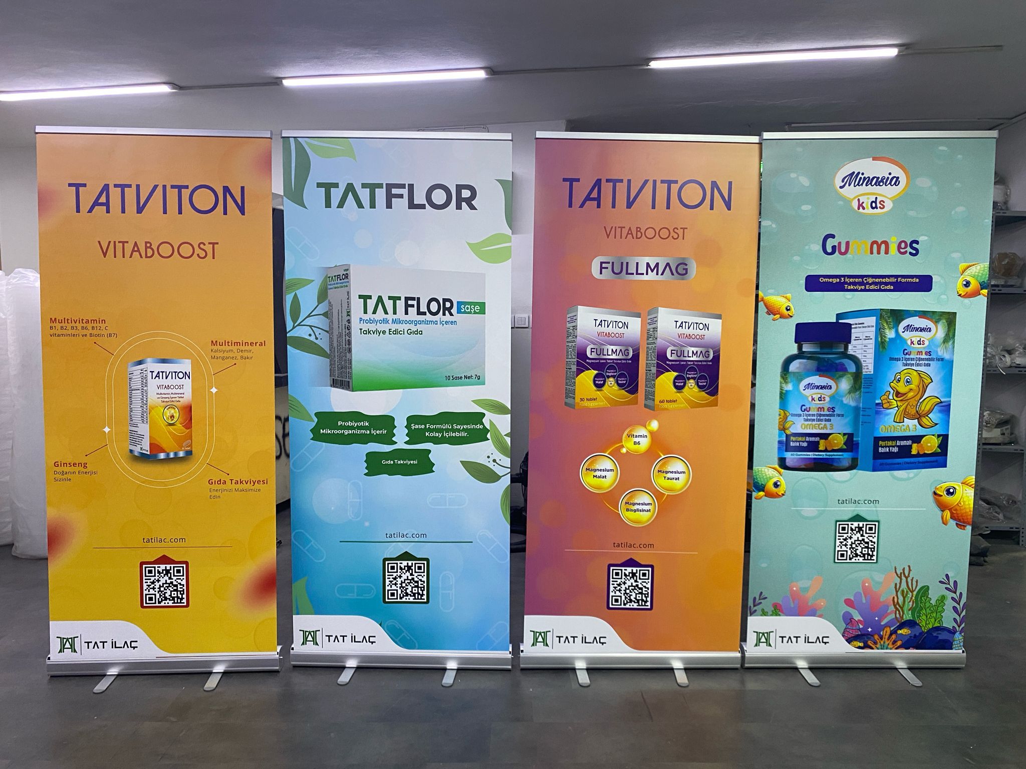 gibi organizasyon alanlarında roll-up banner standlar, firmaların en sık kullandığı tanıtım ürünlerinden biridir.